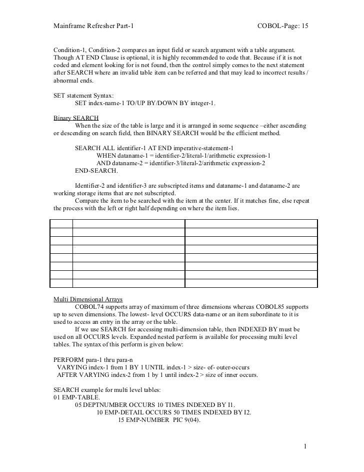 The second procedure of a "PERFORM THRU" statement should be defined after the first procedure Bug "PERFORM" calls should not be recursive Code Smell "COPY SUPPRESS" should not be used Code Smell "LIKE" clauses should not be used without wildcards Code Smell;. COBOL Iterative statements - Tutorial to learn Iterative statements in COBOL in simple, easy and step by step way with syntax, examples and notes. Ibm COBOL Mocktest Quiz.