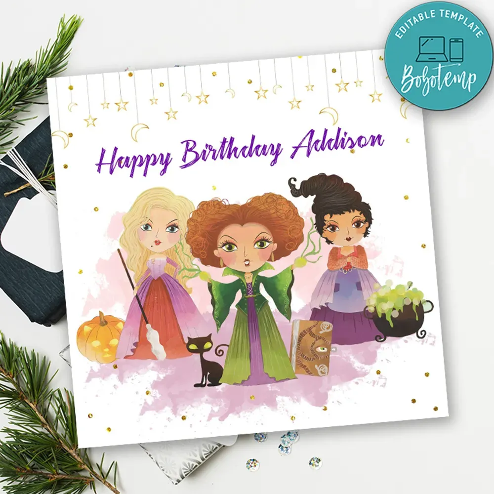 Hocus Pocus Halloween Birthday Card Template To Print At Home Diy Bobotemp